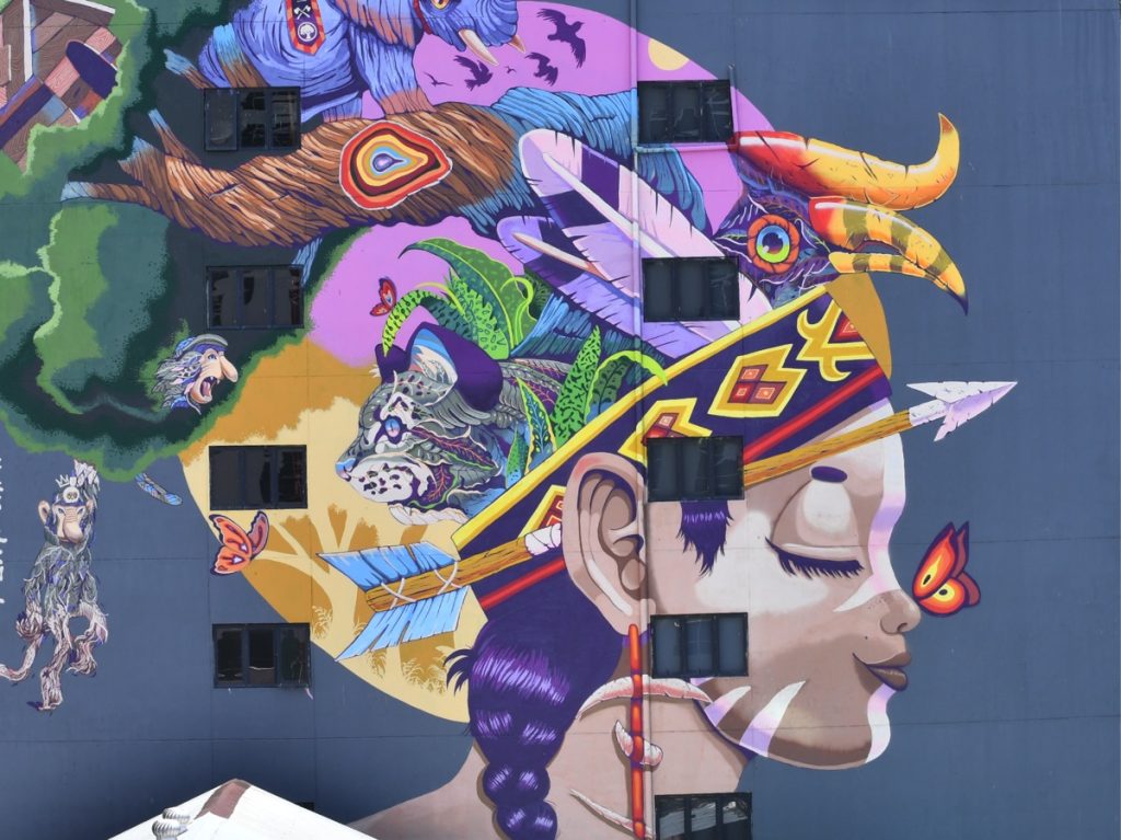 The brainchild of international street artist Kenji Chai, this mural takes Sabah to new heights as an art hub in Borneo. Titled ‘Colour of Borneo’ the artwork presents a cute and lovable image of a girl who ‘carries’ the heritage of Borneo in her head and heart. It adorns the wall of Toojou, a trendy hotel in Kota Kinabalu.