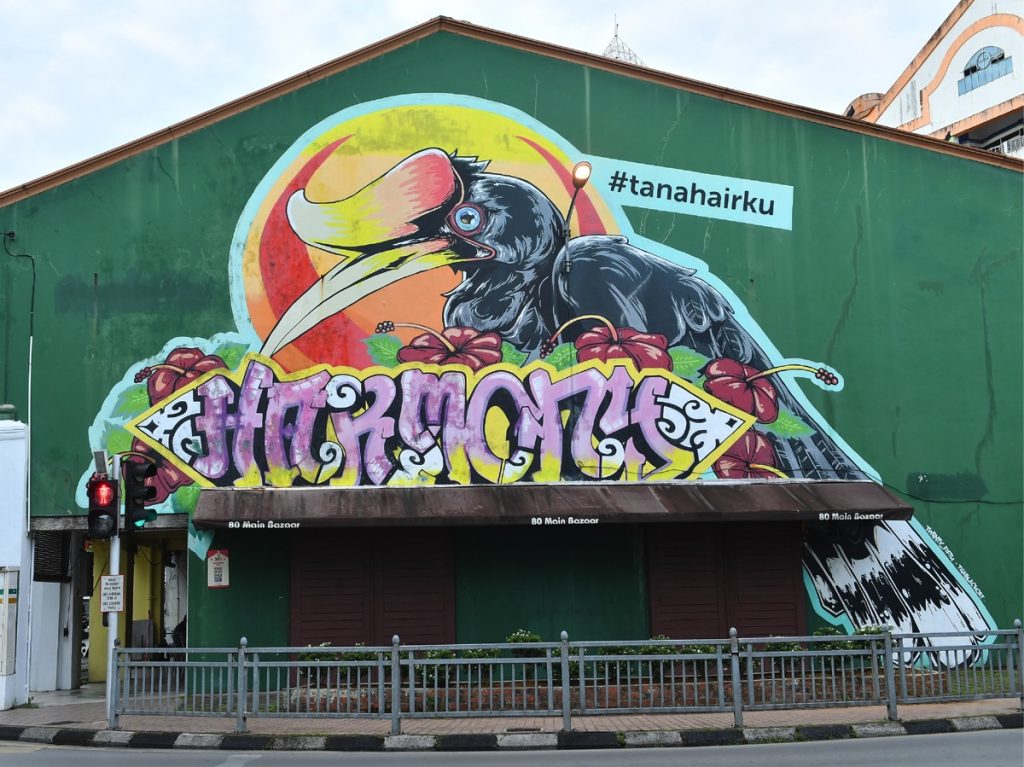 Sarawak’s exotic wildlife provides the inspiration for this mural in Wayang Street, Kuching. Created as part of the #tanahairku murals project, the painting titled Harmony combines elements of gra ti art with urban vibes to make a statement.