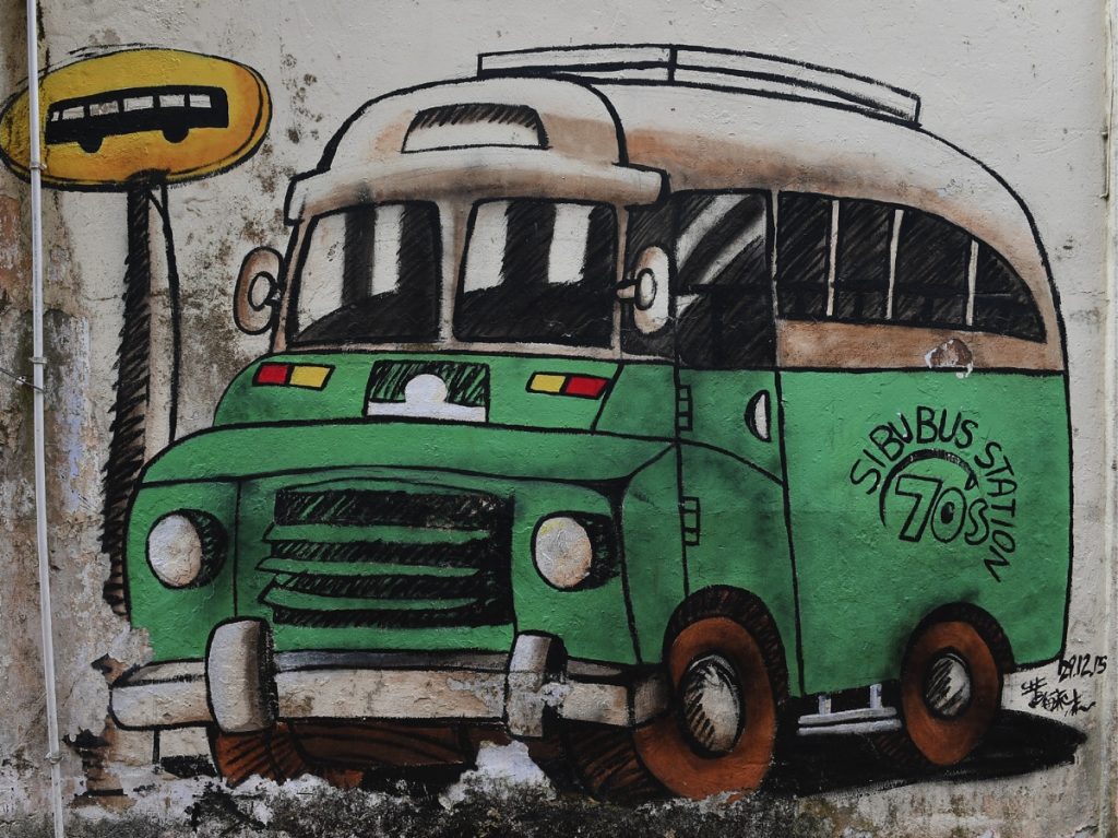 Situated along Jalan Tukang Besi, this painting of an old bus takes visitors on a nostalgic journey to the 1960s and 70s when buses were the main mode of transport in Sibu. For many locals, the bus is an iconic image that makes them reminisce about the simple lifestyle that they led before the advent of sophisticated technology.